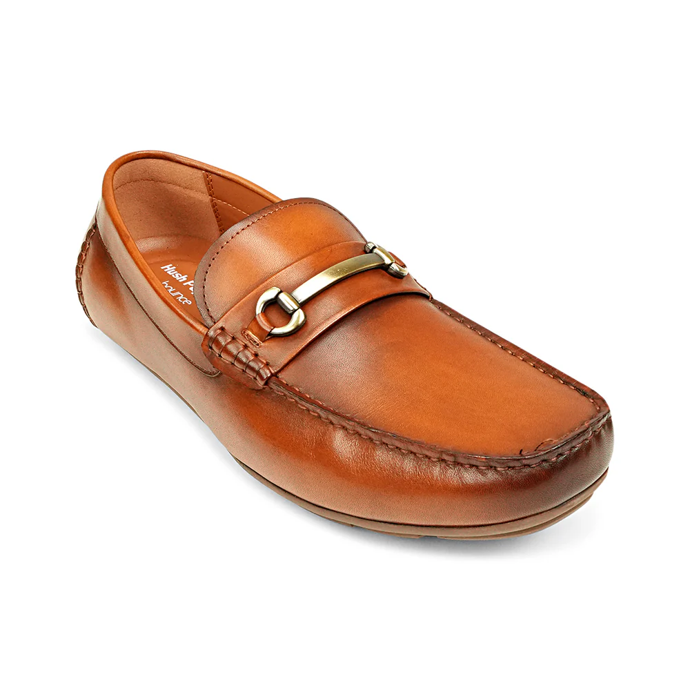 Premium Leather Upper – Smooth, polished, tow-tone finished with metallic trim in a rich tan/brown shade that adds a sophisticated and versatile look. Easy to wear and remove without the need for laces, perfect for convenience and style. Visible stitching around the toe and sides enhances craftsmanship and durability. Provides all-day comfort, ideal for long wear. Ensures grip, stability, and flexibility for natural foot movement. Reduces foot fatigue, making it great for daily use. Timeless design suitable for both casual and semi-formal occasions.